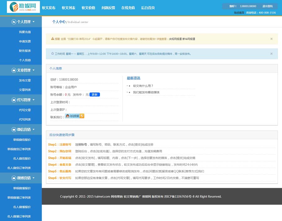 PHP软文价格表门户网站源码,2018最新软文发稿平台整站源码带后台,PHP新闻发布平台源码 文章发布自助推广平台源码。